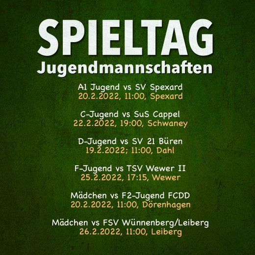 Und es ist soweit, die ersten Spiele der Jungend sind terminiert.