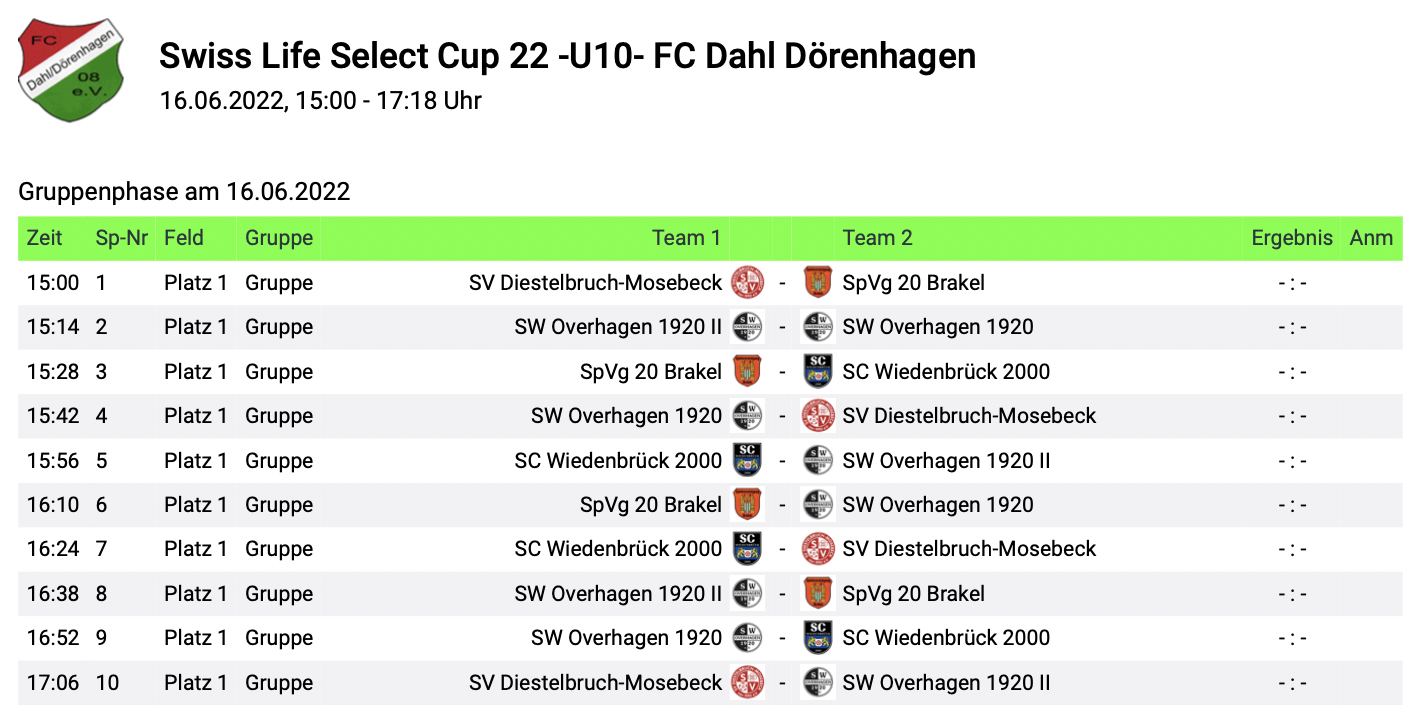 Turniertag: Donnerstag 16.06.2022 (Fronleichnam)