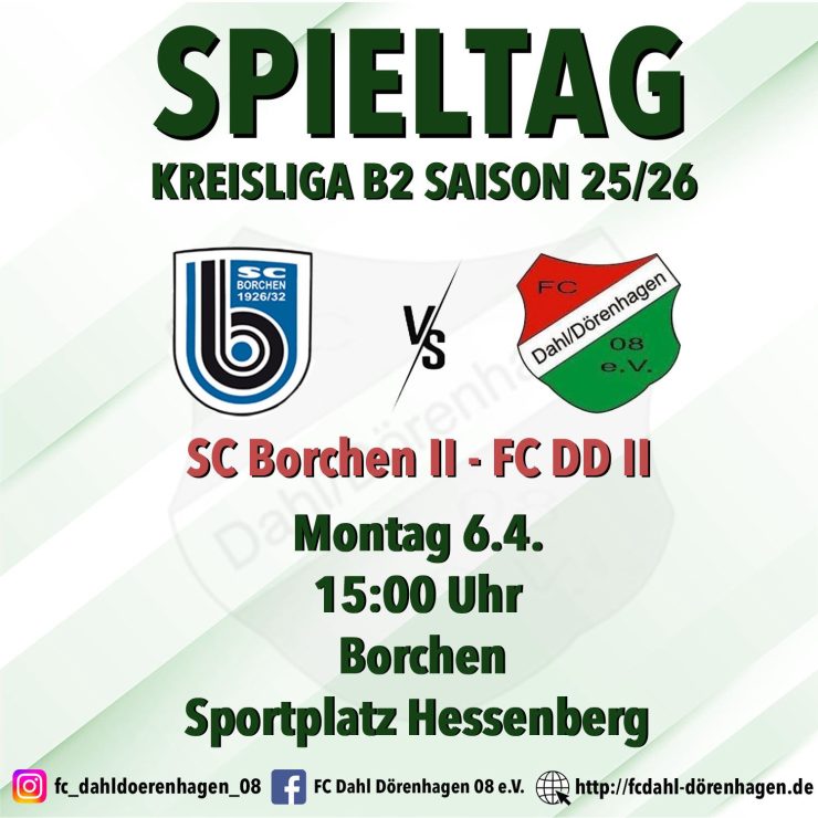 Auch wĂ€hrend der Feiertage darf der FuĂball natĂŒrlich nicht zu kurz kommen und das mit einem echten Highlight! Auf unsere Zweite Mannschaft wartet nĂ€mlich das kleine Derby bei unseren Nachbarn aus Borchen!